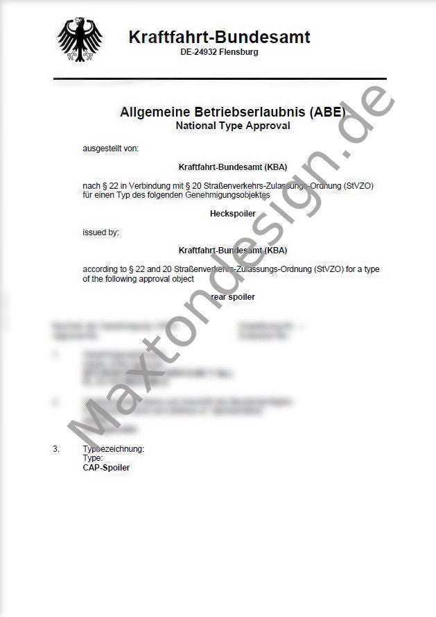Maxton Design Maxtondesign Heckspoiler Gutachten ABE für alle CAP1 AUDI BMW VW FORD SKODA